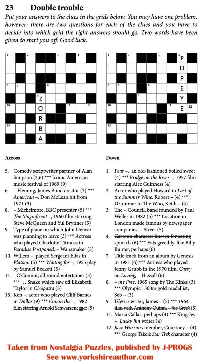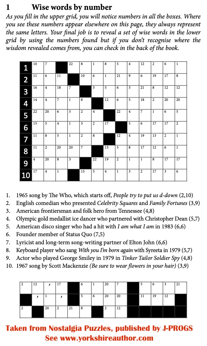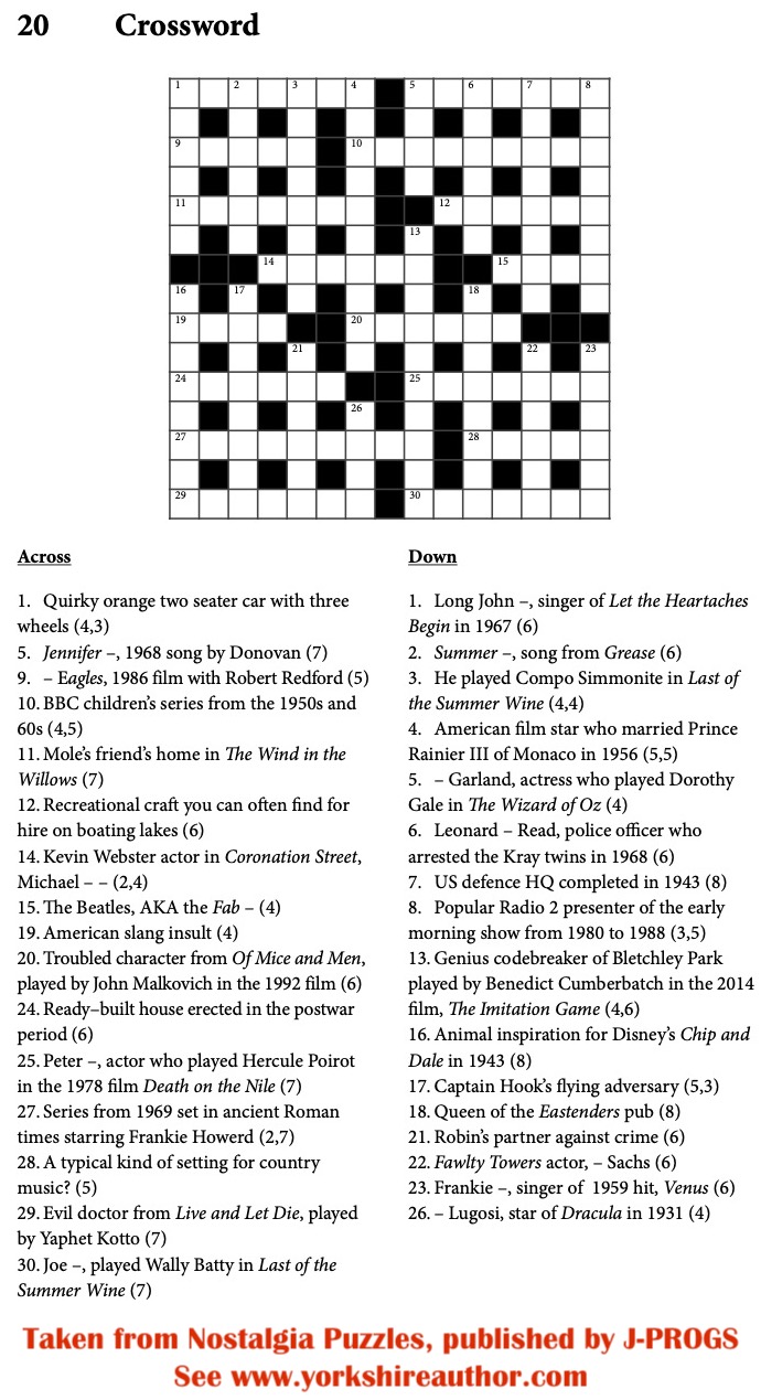 Things ain’t perhaps what they used to be any more but you will find filmstars, authors, artists, poets, musicians and politicians here, alongside their works, accomplishments and notorieties. If you enjoy looking back to those times and you like a mental challenge, this book's for you.